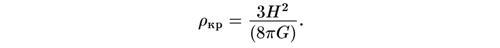 МАТЕМАТИЧЕСКОЕ ДОПОЛНЕНИЕЭти замечания предназначены для тех читателей, которые хотят познакомиться с кое-какой математикой, на которой базируется нематематическое изложение в основной части этой книги. Для того чтобы уследить за ходом обсуждений в большей части книги, совершенно не обязательно изучать эти замечания. ДОПОЛНЕНИЕ 1. ЭФФЕКТ ДОПЛЕРАПредположим, что гребни волн покидают световой источник в регулярные моменты времени, разделенные периодом Т. Если источник движется от наблюдателя со скоростью v, тогда за время между испусканием двух последовательных гребней источник проходит расстояние vT. Это увеличивает время, необходимое на то, чтобы гребень волны дошел от источника до наблюдателя, на величину vT/c, где с — скорость света. Отсюда время, прошедшее между появлением двух последовательных волновых гребней в точке наблюдения, равно длина волны света после испускания[57] длина волны света в момент приема Поэтому отношение этих длин волн Эти же аргументы применимы и тогда, когда источник приближается к наблюдателю, с той разницей, что v заменяется на — v. (Подобные рассуждения применимы не только к световым волнам, но и к любому типу волнового сигнала.) Например, галактики в скоплении Девы движутся от нашей Галактики со скоростью примерно 1000 км/с. Скорость света равна 300 000 км/с. Поэтому длина волны любой спектральной линии от скопления в Деве больше своего нормального значения λ в отношении ДОПОЛНЕНИЕ 2. КРИТИЧЕСКАЯ ПЛОТНОСТЬРассмотрим сферу радиуса R, внутри которой содержатся галактики. (Для целей данного вычисления мы должны выбрать R больше, чем расстояние между скоплениями галактик, но меньше любого расстояния, характеризующего Вселенную в целом.) Масса такой сферы равна ее объему, умноженному на космическую плотность массы ρ: Из ньютоновой теории тяготения следует, что потенциальная энергия любой типичной галактики на поверхности этой сферы где m — масса галактики; G — ньютонова постоянная тяготения, G = 6,67 × 10-8 см3/(г·с2). Скорость этой галактики определяется законом Хаббла в виде где Н — постоянная Хаббла. Следовательно, кинетическая энергия галактики равна Полная энергия галактики есть сумма кинетической и потенциальной энергий: Эта величина должна оставаться постоянной в процессе расширения Вселенной. Если полная энергия Е отрицательна, галактика никогда не может удалиться в бесконечность, так как на очень больших расстояниях потенциальная энергия становится пренебрежимо малой, и в этом случае полная энергия просто равна кинетической энергии, которая всегда положительна. Если же полная энергия Е положительна, галактика может достичь бесконечности, имея остаточную кинетическую энергию. Таким образом, условие того, что галактика имеет скорость, как раз равную скорости отрыва, заключается в том, что Е обращается в нуль, что дает Другими словами, плотность должна иметь значение Это и есть критическая плотность. (Хотя этот результат получен здесь с использованием принципов ньютоновой физики, он на самом деле справедлив даже тогда, когда содержимое Вселенной является ультрарелятивистским, если только иметь в виду, что ρ интерпретируется как полная плотность энергии, деленная на с2.) Например, если Н равна популярному в настоящее время значению 15 км/с на миллион световых лет, то, вспоминая, что световой год с