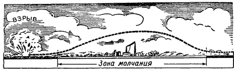 IV. Звук в пространстве 1. Скорость звука На фоне клубов чёрного дыма показывается струйка белого пара. Спустя некоторое время слышен свисток. Это машинист подаёт сигнал о приближении поезда. Ночную тьму пронизывает огненная вспышка, через несколько секунд доносится звук выстрела артиллерийского орудия. Понаблюдайте за работой плотника издали. Вы легко заметите, что когда плотник поднимает топор для следующего удара по дереву, звук слышен только от первого удара. Всё это убеждает нас в том, что свет и звук распространяются с различной скоростью. Свет обгоняет звук, и поэтому мы сначала видим, а потом слышим. Скорость света — самая большая скорость в природе: она равна 300 миллионам метров в одну секунду. Скорость же звука в воздухе составляет всего около 340 метров в секунду, т. е. в 900 тысяч раз меньше. Интересно отметить, что скорость пули при вылете из ствола винтовки почти в три раза больше скорости звука. Когда пуля летит по прямой линии, то есть по такому же пути, как и звук, она обгоняет звук выстрела. В этом случае звук не может служить предостережением. Другое дело при стрельбе из гаубиц или миномётов. Здесь снаряд летит по кривой (с большим углом возвышения); путь его к цели тем самым удлиняется, и звук выстрела может опередить снаряд. За движением звуковой волны можно проследить даже взглядом! Представьте себе, что идёт длинная колонна людей с оркестром впереди. Все шагают в такт музыке. Но если посмотреть со стороны, то нетрудно заметить, что последние ряды идут не в ногу с первыми. Это происходит потому, что звук оркестра до задних рядов доходит позже. Но скорость звука — величина непостоянная. Даже в одном и том же веществе она не всегда одинакова. Так, в воздухе при двадцатиградусном морозе звук проходит 318 метров за секунду, а при 20 градусах тепла — 342,5 метра. В различных твёрдых телах и жидкостях звук также распространяется с различными скоростями. Скорость звука в воде впервые была измерена в 1827 году. С борта одной лодки на верёвке в воду был спущен колокол (рис. 10). Вторая лодка находилась на расстоянии 13 847 метров от первой (рис. 11). В тот момент, когда на первой лодке молоток ударял в колокол, на ней одновременно производилась и вспышка пороха. На второй лодке человек наблюдал момент вспышки и отмечал момент прихода звука от колокола. Таким путём было вычислено время пробега звуковой волной рас- стояния между лодками по воде. Оказалось, что скорость звука в воде в четыре раза больше, чем в воздухе. За одну секунду звук в воде проходит 1435 метров. Рис. 10. Измерение скорости звука в воде. Человек, сидящий в этой лодке, передаёт звук Рис. 11. Измерение скорости звука в воде. Здесь человек воспринимает звук В большинстве твёрдых тел скорость звука ещё больше. Например, в дереве она достигает 4800 метров, в стали — 5000 метров, в стекле — 5600 метров в секунду. Звуки, различные по высоте, распространяются в одном и том же веществе с одинаковой скоростью. Если бы это было не так, то нельзя было бы слушать музыку издалека. Одни звуки обгоняли бы другие и вместо стройной мелодии вдали от оркестра слышался бы просто шум. Некоторые племена, например, племена экваториальной Африки, ещё и поныне непосредственно используют звук как средство связи. Для этой цели чаще всего употребляются специальные барабаны. Услышанные в одном месте, условные звуковые сиг