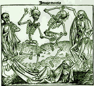 Дело, конечно, обстоит с точностью до наоборот: типичные кошмары «торчка» становятся действительностью, материализуясь в картинах художника. Босх не фантазировал и ничего не изобретал — он просто рисовал то, что видел. Реальность таких видений под воздействием спорыньи мозг видящего сомнению не подвергает. Даже во время приступа Delirium tremens — тривиальной «белой горячки» — люди видят зеленых чертей совершенно реально. В любой медицинской энциклопедии описано, что понимание своих видений как глюков, а не как наблюдения действительности, приходит только через несколько дней после приступа. Я видел людей, которые в течении недели после того, как их откачали, все не могли понять, что во время приступа было реальностью, а что глюками. Галлюцинации не замещают реальность, а накладываются на нее. «Напиться до чертиков» — кому не знакома эта фраза? Но все ли задумываются, что если бы не имманентно присутствующая в западном сознании христианская мифология, то допивались бы до чего-нибудь другого (до синих инопланетян, например) — все тот же вопрос установки, как и при отравлении спорыньей. Разница только в том, что алкогольное отравление — всегда «бэд трип», а спорынья — могут быть и прекрасные «Божественные видения». В теории. На практике — христианство со своим культом дьявола и прочими ужасами этому никак не способствовало, а редкие «беседы с Богом» оборачивались только крестовыми походами и прочими французскими революциями. Воздействие темы смерти и страданий на сознание людей в XV веке качественно изменилось благодаря книгопечатанию и гравюрам. Картины Босха и его последователей — концентрированное и гениальное выражение страха перед смертью и адскими муками. Говорят, что Босх создал художественную энциклопедию зла всех видов и форм. Но и без него в Европе процветала такая тема творчества, как «Пляска Смерти», а с появлением гравюр изображение Пляски смерти пришло практически в каждый дом. Исследователи, как обычно, пытаются описывать это явление, как нечто загадочное и непонятное: