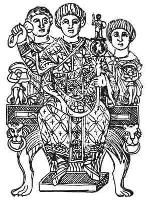 Глава 4 Администрация и власти Император был, как мы уже видели, верховной властью, источником и сутью всех законов, сердцем администрации, вождем и защитником народа. Это объясняет, почему так много императоров, особенно Феодосий, Ираклий и Маврикий — в ранний период, а позднее — Алексей I Комнин, пренебрегали желаниями своих министров и сами вели войска на бой. Никто из них не был номинальным главой государства, каждый играл значительную роль в повседневном управлении империей. Именно по этой причине византийская администрация оставалась весьма централизованной вплоть до латинского завоевания Константинополя. Даже в заключительный период существования империи большинство правительственных ведомств и их старших сотрудников получали указы напрямую от императора. В первые три столетия истории страны, пока административная система находилась в процессе формирования, императору приходилось уделять много внимания управлению. Он брал себе помощниками людей, которые были скорее придворными, чем руководителями. Титулы в Византии не передавались по наследству; каждый придворный или чиновник получал титул, который соответствовал его классу или посту. В каждом случае он заключал в себе его чин и положение в порядке старшинства. Придворные, «комины», не выполнявшие административных обязанностей, составляли класс патрициев, который делился на три части. Принадлежащие к первой из них считались почти равными консулу по значимости. Высокопоставленные чиновники назывались магистрами. КIX веку насчитывалось 18 чинов, но три высших из них, с титулами «кесарь», «нобилиссимус» (то есть благороднейший) и «куропалат», предназначались только для императорской семьи, а еще один — «опоясанная патрикия» — для придворных дам, которым давалось право носить пояс в качестве отличительного знака. Прежде всего придворные чиновники выступали в роли старших управляющих. Так, лорд-канцлер, «постельничий», как его сначала называли, хотя в дальнейшем, когда его пост потерял значимость, он стал именоваться «паракимомен» («тот, кто спит рядом с господином своим»), не только отвечал за бесперебойную работу двора, но также имел серьезное влияние в административной сфере. Позднее его должность, так же как и «протовестиария», то есть начальника гардероба, занимал евнух. С другой стороны, «папий», то есть старший управляющий каждого дворца, редко обладал политическим влиянием. «Магистр официорий», или начальник личной канцелярии, как назывался глава императорского суда, был, по крайней мере до завоевания арабами большей части византийских территорий, самым могущественным человеком и при дворе, и в администрации. В его обязанности входило подбирать людей, которые будут заниматься делами империи, служа в ведомствах столицы. Как руководитель государственного учреждения, магистр официорий отвечал за эффективность работы административной системы. Поскольку он еще и исполнял обязанности церемониймейстера и отвечал за безопасность монарха, ему также подчинялись и императорские телохранители. В своих действиях он отчитывался лишь перед императором и получал указания только от него. Такая независимость не помогала ему противостоять искушениям. Многие занимавшие этот высокий пост время от времени опускались до взяток. Более серьезным шагом стало соз