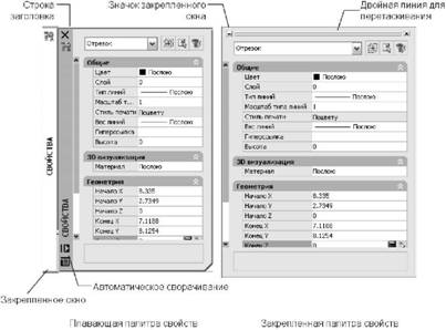 Открепление окна или палитры Воспользуйтесь одним из следующих способов: ■ Дважды нажмите кнопку мыши на ручке переноса (двойная полоса) вверху или внизу окна. ■ Поместите курсор на ручке переноса вверху или внизу окна, удерживайте левую кнопку устройства указания и перетащите окно из места закрепления. Включение и отключение режима "Авто-скрытие" для плавающей палитры или окна. Выполните одно из следующих действий: ■ Нажмите правую кнопку мыши на плавающей палитре или окне. Выберите "Авто-скрытие". ■ На заголовке плавающей палитры или окна нажмите кнопку "Авто-скрытие". Если выбран режим "Авто-скрытие", плавающие окна разворачиваются и сворачиваются при пересечении их курсором. Если этот режим отменён, постоянно отображается полностью открытое окно.
