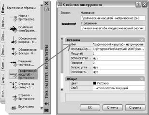С помощью такого инструмента можно впоследствии быстро строить объекты с теми же свойствами, что и исходный объект. Примером инструмента, созданного с помощью перетаскивания объекта, может служить круг красного цвета, имеющий вес линий 0,05 мм. Так же можно создавать инструменты из имеющихся блоков и внешних ссылок. При перетаскивании геометрического объекта или размера на палитру автоматически создается новый инструмент с соответствующим подменю. Например, инструменты, созданные на основе размеров, содержат подменю, с помощью которого можно наносить размеры различных типов. Подменю раскрываются нажатием на символе стрелки справа от значка инструмента на палитре. Независимо от того, какой инструмент выбран из подменю, построенный с его помощью объект имеет те же свойства, что и объект, по которому создано это подменю на палитре. Вставка блоков и ссылокДля инструментов работы с блоками и ссылками можно выбрать режим, в котором при щелчке мышью для размещения блока или внешней ссылки отображается запрос на ввод угла поворота (начиная с 0). В этом режиме угол поворота, заданный в диалоговом окне "Свойства инструмента", игнорируется при создании объекта в чертеже. Если пользователь перетаскивает блок или внешнюю ссылку либо вводит команду поворотпо начальному запросу вставки командной строки, запрос об угле поворота не отображается. Блоки, которые пользователь перетаскивает мышью из палитры в область рисования, можно масштабировать и поворачивать после того, как они размещены на чертеже. При перетаскивании блоков из инструментальной палитры можно использовать объектную привязку; шаговая привязка при этом подавляется. Для инструментов на основе блоков и штриховок можно задать вспомогательный масштаб. (Вспомогательный масштаб умножает текущее значение масштаба на масштаб печати или масштаб размера.) При перетаскивании блока из инструментальной палитры в чертеж он автоматически масштабируется в соответствии с соотношением заданных единиц блока и единиц текущего чертежа. Например, если для измерения единиц данного чертежа используются метры, а для измерения единиц блока сантиметры, коэффициент пересчета составляет 1 к 100. Соответственно, при перетаскивании блока в чертеж его размеры меняются в пропорции 1:100. Обновление определений блоков на инструментальных панелях При изменении блока в исходном чертеже определение блока в текущем чертеже автоматически не обновляется. Определение блока в текущем чертеже можно обновить, нажав правую кнопку мыши на инструменте работы с блоками и после этого выбрав "Переопределить" из контекстного меню. Если параметр "Переопределить" отключен, это означает, что источник определения блока является скорее файлом чертежа, нежели блоком в файле чертежа. Для обновления определения блока, созданного с помощью вставки файла чертежа, следует использовать Центр управления. Дополнительную информацию см. в разделе Добавление содержимого с помощью Центра управления.