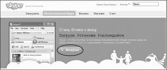 hhttp://www.skype.com/intl/en/prices/callrates/?currency=USD. Ну как? Впечатляет? Как установить SkypeВы знаете, что можно бесплатно скачать программу Skype. Просто зайдите на сайт http://skype.com/intl/ru. Там же вы сможете при желании оплатить звонки на городские и мобильные телефоны. Там же вы найдете подробные инструкции по установке и работе с этой программой. А после установки мы сможем общаться с вами в режиме реального времени с помощью гарнитуры. Поскольку файл SkypeSetup «весит» около 23 мб, чтобы не качать его с Интернета, можете поискать на CD-дисках. Он часто бывает на дисках-приложениях к различным компьютерным журналам. Жмем на зеленую кнопку