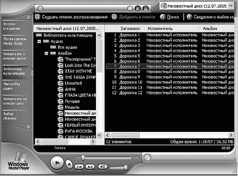 Окно проигрывателя Windows Media 9.0