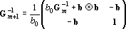 где γij-1 — элемент матрицы Γ-1({xi}). Поскольку определитель матрицы Грама равен нулю, если множество векторов линейно зависимо, то матрица, обратная к матрице Грама, а следовательно и дуальное множество векторов существует только тогда, когда множество эталонов линейно независимо. Для работ сети (6) необходимо хранить эталоны и матрицу Γ-1({xi}). Рассмотрим процедуру добавления нового эталона к сети (6). Эта операция часто называется дообучением сети. Важным критерием оценки алгоритма формирования сети является соотношение вычислительных затрат на обучение и дообучение. Затраты на дообучение не должны зависеть от числа освоенных ранее эталонов. Для сетей Хопфилда это, очевидно, выполняется — добавление еще одного эталона сводится к прибавлению к функции H одного слагаемого (x, xm+1)², а модификация связей в сети — состоит в прибавлении к весу ij-й связи числа xim+1xjm+1 — всего n² операций. Для рассматриваемых сетей с ортогональным проектированием также возможно простое дообучение. На первый взгляд, это может показаться странным — если добавляемый эталон линейно независим от старых эталонов, то, вообще говоря, необходимо пересчитать матрицу Грама и обратить ее. Однако симметричность матрицы Грама позволяет не производить заново процедуру обращения всей матрицы. Действительно, обозначим через Gm — матрицу Грама для множества из m векторов; через Em — единичную матрицу размерности m×m. При обращении матриц методом Гаусса используется следующая процедура: 1 .Запишем матрицу размерности m×2m следующего вида: (Gm|Em). 2. Используя операции сложения строк и умножения строки на ненулевое число преобразуем левую квадратную подматрицу к единичной. В результате получим (Em|Gm-1). Пусть известна Gm-1 — обратная к матрице Грама для множества из m векторов xi. Добавим к этому множеству вектор xm+1. Тогда матрица для обращения матрицы Gm+1 методом Гауса будет иметь вид: После приведения к единичной матрице главного минора ранга m получится следующая матрица: где bi — неизвестные величины, полученные в ходе приведения главного минора к единичной матрице. Для завершения обращения матрицы Gm+1 необходимо привести к нулевому виду первые m элементов последней строки и (m +1)-го столбца. Для обращения в ноль i-го элемента последней строки необходимо умножить i-ю строку на (x, xm+1) и вычесть из последней строки. После проведения этого преобразования получим где b0 = 0 только если новый эталон является линейной комбинацией первых m эталонов. Следовательно b0 ≠ 0. Для завершения обращения необходимо разделить последнюю строку на b0 и затем вычесть из всех предыдущих строк последнюю, умноженную на соответствующее номеру строки bi. В результате получим следующую матрицу где Fij = Gmij-1-bicj/b0. Поскольку матрица, обратная к симметричной, всегда симметрична получаем ci/b0 = -bi/b0 при всех i. Так как b0 ≠ 0 следовательно bi = -ci. Обозначим через d вектор ((x1, xm+1), …, (xm, xm+1)), через b — вектор (b1, …, bm). Используя эти обозначения можно записать b = Gm-1d, b0 = (xm+1,xm+1)-(d,b), b0 = (xm+1,xm+1)-(d,b). Матрица Gm+1-1 записывается в виде Таким образом, при добавлении нового эталона требуется произвести следующие операции: 1. Вычислить вектор d (m скалярных произведений — mn операций, mn≤n²). 2. Вычислить вектор b (умножение вектора на матрицу — m² операций). 3. Вычислить b0 (два скалярных произведения — m+n операций). 4. Умножить матрицу на число и добавить 