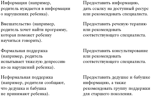 Читатель, несомненно, отметил, что собеседование охватывает те же области, что СПР, – информация, вмешательство, формальная поддержка, неформальная поддержка, материальная поддержка, конкурирующие нужды. Собеседование позволяет получить ответы на те же вопросы иным путем, уточнить и дополнить информацию; таким образом, оно служит ценным дополнением к вопроснику. Усвоение навыков собеседования должно входить в программу обучения будущих специалистов по раннему вмешательству. Без такого обучения они могут ощущать неловкость, задавая личные вопросы, и не уметь добиваться содержательных ответов; кроме того, в беседе с ними семья может ощущать себя некомфортно. Мы рекомендовали бы включать во все программы обучения раннему вмешательству курсы по методам социологических исследований, техникам консультирования или другим подобным предметам. Альтернативой для тех, кто уже работает в области раннего вмешательства, может стать обучение без отрыва от производства. Приведенный здесь шаблон собеседования является общим руководством и не рассчитан на буквальное применение необученным персоналом. Независимо от уровня обучения персонала, данные первого собеседования с семьей следует использовать с некоторыми предосторожностями. В начале программы вмешательства интервьюер – для семьи посторонний, еще ничем не заслуживший ее доверия. По мере того, как между специалистом и семьей развиваются теплые, доверительные отношения, семья может сообщать дополнительную информацию о своих проблемах. Кроме того, со временем проблемы меняются. Следовательно, процесс установления соответствия должен идти непрерывно, а специалисту следует обращать внимание на любые перемены в статусе семьи. Наконец, собеседование, как и все остальные методы помощи семье, должно проводиться в духе партнерства с членами семьи. В этом случае семья является экспертом, а специалист – учеником, получающим знания о ее ресурсах, проблемах и приоритетах. Наблюдение Специалисты получают информацию о семье, просто находясь с ней рядом. В ходе общения и взаимодействия они наблюдают за тем, как семья одевается, как члены семьи общаются друг с другом, какие выражения при этом используют, как проявляют свои чувства. Специалисты, работающие с семьями на дому, имеют возможность увидеть также обстановку, игрушки и другие материальные ресурсы; узнать распорядок дня; увидеть семейные фотографии и сувениры; наконец, понаблюдать за более неформальным общением между членами семьи. Такая информация может быть ценна при составлении ИПРС, однако специалисту следует обязательно поинтересоваться у семьи, согласна ли она на ее использование; с точки зрения семьи, использование этой информации может выглядеть неуместным и бестактным. Наблюдение может быть наиболее уместным методом при работе с семьями иной культуры, с подозрением относящимися к вопросникам и неохотно дающими личные сведения в формате интервью. Однако в целом наблюдение призвано лишь дополнять информацию, полученную иными путями. Наблюдатель, не знакомый со стилем жизни семьи и принятой в ней манерой поведения, может сделать неверные выводы о ее проблемах и приоритетах. Поэтому свои наблюдения следует всегда подкреплять вопросами (например: «Я вижу, ваши дети дружно играют вместе; они всегда так хорошо ладя