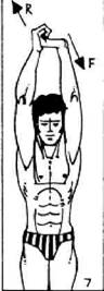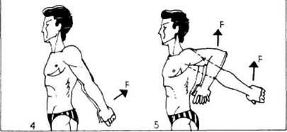 Глава 4 Практические уроки В основе силовых упражнений на самосопротивление лежат определенные принципы. Благодаря мышцам, прикрепленным к костным рычагам (см. рис. 2, а) и выполняющим роль своеобразных биомеханических тяг, оживляется вся «конструкция» человека. Чем больше длина l костного рычага (см. рис. 2, б), тем сильнее должна напрягаться мышца для преодоления сопротивления, создаваемого внешней нагрузкой G. При этом костные рычаги, соединенные суставами, перемещаются в направлении сокращающихся мышечных пучков. Самое простое движение выполняют пальцы, фаланги которых сгибаются при напряжении соответствующих мышц-сгибателей, расположенных на внутренней стороне пальцев. Более сложные пространственные движения совершают руки (кисти, предплечье, плечо), а также туловище и ноги, вовлекая в работу множество групп мышц, прикрепленных к различным точкам костных рычагов. Сокращаясь, мышечные волокна укорачиваются. Их суммарная сократительная способность определяет силовые возможности мышцы, перемещающей конкретный костный рычаг. Для того чтобы мышца совершала работу, необходимо преодолеть внешнюю силу — сопротивление R. Этот принцип преодоления внешнего сопротивления с перемещением костных рычагов и является основным условием физической тренировки. Внешнее сопротивление может иметь любую природу: гравитационную, биомеханическую и т. д. В атлетической гимнастике без снарядов мы будем создавать это сопротивление наиболее экономичным и доступным способом — например, одной или обеими руками, а также используя любую горизонтальную поверхность, на которой можно стоять, сидеть или лежать. Это позволит изобрести такое количество упражнений, которое невозможно выполнять ни с одним спортивным снарядом. Кроме того, по своей эффективности упражнения на самосопротивление ни в чем не уступают тренировкам с применением какого-либо специального инвентаря. Вам также очень легко будет дозировать нагрузку по степени мышечного напряжения, амплитуде и скорости выполнения движений, что не всегда возможно, например, при занятиях упражнениями с гирями, имеющими фиксированный вес, или эластичным эспандером, упругость которого зависит от поперечного сечения резинового шнура или количества пружин. Выполняя упражнения на самосопротивление, можно достичь максимального уровня мышечного напряжения, не боясь получить травму, как это часто случается у занимающихся со штангой. Рис. 3. Основные мышцы: 1 — мышцы кисти, 2 — мышцы предплечья, 3, 22 — бицепс, 4, 19 — трицепс, 5, 23 — круглая мышца, 6, 24 — широчайшая мышца спины, 7, 20 — косая мышца живота, 8 — разгибатель бедра, 9 — больше-берцовая, 10 — мышцы стопы, 11, 16 — мышцы шеи, 12, 17 — трапециевидная, 13, 18 — дельтовидная, 14 — большая грудная, 15 — прямая мышца живота, 21 — икроножная, 25 — сгибатель спины, 26 — ягодичная, 27 — сгибатель бедра, 28 — ахиллово сухожилие Прежде чем приступить к освоению силовых упражнений без снарядов, познакомьтесь с простейшим атласом мышечной системы человека (рис. 3), чтобы вам легче было научиться правильно выполнять все движения. Упражнения объединены в комплексы по их направленности, например, для мышц пальцев и кисти руки, плечевого пояса, туловища и т. д. Вы можете развивать какие-нибудь определенные мышцы либо самостоятельно составить для себя комплекс упражнений, включающ
