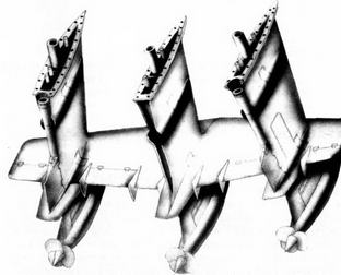 ОПЫТНЫЙ МПК НА ПК пр. 1141 «АЛЕКСАНДР КУНАХОВИЧ» Создание МПК пр. 1141В послевоенные годы бурное развитие военно-морской техники и энергетики обострило соревнование между возможностями ПЛ и кораблей ПЛО. Скорости ПЛ возросли, их шумность уменьшилась, и они с успехом могли уклоняться от обнаружения и атак охотников за подводными лодками. В 1949 г. в г. Зеленодольске при заводе им. А.М.Горького было создано проек- тно-конструкторское бюро ЦКБ-340 (затем – ЗПКБ) для проектирования больших охотников (БО) за ПЛ, которое сначала занималось совершенствованием и сопровождало постройку БО пр. 122Б, а затем стало проектировать новые корабли. Начальником и главным конструктором бюро был назначен талантливый инженер и организатор А.В.Кунахович, работавший в ЦКБ-51 (г.Горький) главным конструктором большого охотника за ПЛ пр. 122Б и пр. 159. С 1955 г. бюро стало самостоятельной организацией. В это время работавший в ЦАГИ им. Н.Е.Жуковского брат А.В.Кунаховича -Константин -для схемы дальнего гидросамолёта-бомбардировщика рассматривал в качестве взлетно-посадочного устройства водяное (подводное) крыло и систему стабилизирующих лыж и, вероятно, консультировался с братом-близнецом -гидромехаником по избранной специализации. Это имело свои последствия. В 1956 г. ЦКБ-340 (совместно с ЦАГИ) обратилось в 5 ГУ МСП с просьбой разрешить провести по плану ОК и НИР исследования путей создания перспективного корабля-перехватчика ПЛО на ПК для поиска и уничтожения быстроходных и малошумных ПЛ. В тактику использования корабля закладывался скачкообразный (вертолетный) способ поиска ПЛ, когда корабль в течение короткого времени обследует акваторию с помощью антенны ГАС, опускаемой на стопе на глубину наилучшего прохождения гидроакустического сигнала (до 100 м) и, следовательно, большей дальности и надежности обнаружения ПЛ, а затем, подняв антенну, на высокой скорости переходил в следующую расчетную точку наблюдения. Средняя поисковая скорость, таким образом, была заметно выше, чем у кораблей ПЛО с подкильными антеннами ГАС. Это было смелое и необычное решение -использовать вертолетный способ для кораблей. За рубежом уже были КПК, но у них не было надежного способа обнаружения ПЛ. Система групповых атак, позволяющая передавать параметры движения ПЛ от обнаружившего ее корабля другим для последующей атаки, которая уже закладывалась в пр. 159, повышала эффективность системы ПЛО. В середине 1957 г. задание на предложенную тему было утверждено. Отработка гидродинамической схемы корабля с ПК производилась в ЦАГИ. В результате выполнения темы была показана возможность создания такого корабля и обоснована скорость 100-120 узлов. Задача борьбы с АПЛ имела стратегическое значение. Постановлением ЦК КПСС и СМ СССР от августа 1958г. было принято предложение ВПК о проектировании и строительстве двух опытных быстроходных кораблей ПЛО пр. 1121 с представлением их на испытания в 1962 г. (в 1960 г. испытания перенесены на 1963 г.). Тем же постановлением предусматривались разработка техпроекта в первом квартале 1960г., поставка двух образцов специальной ГАС во втором квартале 1962 г. и 10 двигателей НК-7 во втором квартале 1961г., а также изготовление в 1959 г. в корпусе малого охотника за ПЛ пр. 201М самоходного макета М1121, получившего название «Смерч», для обследования ЛКС, ходовых и мореходных качеств, получения дан