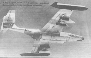 "СКОРПИОН" С ЯДЕРНЫМ ЖАЛОМ … ![]() Над одним из пустынных полигонов в штате Невада 19 июня 1957 г. появился двухместный перехватчик, принадлежащий командованию ПВО ВВС США. Летчик получил от оператора информацию о том, что над пустыней отсутствуют другие летательные аппараты, откинул красный колпачок на приборной доске и нажал кнопку "пуск". Под крылом самолета появилось пламя от включившегося двигателя, и сошедшая с пилона ракета стремительно ушла вперед, обогнав свой носитель. Внешне все выглядело как обычно - ракетное оружие для воздушного боя к тому времени перестало быть экзотикой. Однако через несколько секунд после пуска над пустыней взорвался огненный шар, а регистрационные приборы зафиксировали ядерный взрыв с мощной ударной волной. В этот день американцы впервые испытали в реальном полете ядерную ракету класса "воздух-воздух" Дуглас МВ-1 "Дженни" {Douglas MB-1 "Genie"). Самолет-перехватчик F-89J "Скорпион" (Northrop F-89J "Scorpion") открыл эру боевой авиации с ядерным оружием воздушного боя. К концу второй мировой войны специалисты фирмы "Нортроп" имели опыт работы по самым передовым направлениям военной авиации: реактивным двигателям и радарным установкам. Именно здесь выпускали первый перехватчик с локатором Р-61 "Черная вдова" ("Black Widow"), специально созданный по заказу ВВС США. Первым для фирмы самолетом с ТРД стал опытный ХР-79В, выполненный по схеме "летающее крыле. Вполне естественно что конструкторы "Нортропа" участвовали в конкурсе, когда ВВС США понадобился новейший перехватчик с радаром. Командование военно-воздушных сил официально объявило требования для нового всепогодного истребителя 28 августа 1945 г. Максимальная скорость самолета у земли должна была составлять 885 км/ч, а на высоте 10700 метров - 845 км/ч. Время набора высоты 10700 м установили в 12 минут, дальность - 967 км. Кроме стрелкового вооружения перехватчик планировали оснастить и ракетами "воздух-воздух". Сначала военные не обговаривали жестко, что самолет обязательно должен быть реактивным. Но для специалистов уже было ясно - будущее за реактивной техникой! Поэтому все фирмы, участвующие в конкурсе - "Белл", "Консолидейтед", "Кертисс", "Дуглас", "Гудьир" и "Нортроп" - отказались от поршневых двигателей, отдав предпочтение ТРД. Кертисс оказалась в более выигрышном положении. Там имелся вариант тяжелого истребителя ХА-43.проектирование которого началось еще во время войны. С окончанием боевых действий военные поменяли свою точку зрения на ХА-43, и конструкторы решили на его базе создать новый перехватчик. Проект самолета, получившего обозначение ХР-87, был готов в ноябре 1945 г., когда остальные фирмы только приступали к первым эскизам своих машин. На "Нортропе" разработали четыре варианта самолета. В марте 1946 г. комиссия ВВС выбрала для постройки лишь один (среди забракованных оказался и вариант по схеме "летающее крыло", потому что прототип ХР-79В потерпел катастрофу 12 сентября 1945 г). Перехватчик получил на фирме собственный номер N-24, а в соответствии с системой ВВС США ему присвоили опытный индекс ХР-69 (Pursuit - перехватчик, преследователь) и собственное имя "Скорпион". ВВС заказали постройку двух прототипов ХР-69. Окончательный контракт подписали в сентябре 1947 г. В период его подготовки в проект внесли различные изменения, увеличившие стоимость работ. В 1948 г. военно-воздушные силы США были реорганизов
