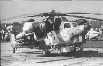 Ми-28 ВЕРТОЛЕТ ОГНЕВОЙ ПОДДЕРЖКИ Ми-28 (код НАТО – «Havoc») предназначен для использования на театрах военных действий, насыщенных средствами армейской ПВО. Способен выполнять полеты днем и ночью на предельно малых высотах (5-15 м), используя защитный рельеф местности, обладает высокими летными характеристиками, способностью обнаруживать и уничтожать цели в кратчайшее время, а также высокой боевой защищенностью от пуль стрелкового оружия и снарядов малокалиберной зенитнои артиллерии. Проектирование Ми-28 началось в 1980 г., первый опытный вертолет поднялся в воздух 10 ноября 1982 г. На базе Ми-28 создан вертолет Ми-28Н («ночной»). Интегрированный комплекс бортового оборудования Ми-28Н при решении боевых задач обеспечивает пилотирование с огибанием рельефа местности как в ручном, так и в автоматизированном режиме с использованием картографической информации и трехмерного синтезированного изображения местности; поиск, обнаружение и распознавание целей; групповое применение вертолетов с автоматизированным распределением целей между ними; двусторонний обмен информацией о целях между вертолетами и воздушными или наземными командными пунктами. В состав комплекса входит стабилизированная обзорно-прицельная станция оператора с оптическим, тепловым и телевизионным каналами наблюдения; тепловизионная станция летчика и лазерный дальномер, нашлемная система целеуказания и индикации, очки ночного видения летчика; система электронной индикации на цветных жидкокристаллических дисплеях; инерциальная и спутниковая навигационные системы, а также система навигации по физическим полям Земли; комплекс средств связи; надвтулочная РЛС кругового обзора. РЛС дает возможность вертолету вести поиск целей , используя для маскировки складки местности или деревья, выставив из укрытия только свою «макушку». Кроме того, РЛС Ми-28Н, например в отличие от РЛС американского вертолета AH-64D «Апач», способна обеспечивать решение пилотажно-навигационных задач. Сверхзвуковая высокоточная управляемая ракета «Атака» имеет радиокомандную систему наведения повышенной помехозащищенности. Она поражает танки с динамической защитой брони, а также воздушные цели. Сверхзвуковая УР «Игла» класса «воздух-воздух» применяется по принципу «пустил-забыл». Их пуск контролирует оператор Подвижная пу шечная установка оснащена пушкой 2А42 калибра 30 мм. Диапазон углов ее отклонения в горизонтальной плоскости 220°, в вертикальной – 53°. Это делает вертолет менее уязвимым для противника. Размещение боезапаса непосредственно на турели значительно повышает надежность подачи снарядов (отсутствуют гибкие перекручивающиеся рукава) Благодаря селективному питанию пушки, экипаж может выбрать тип снаряда непосредственно во время боя. Летчик выполняет прицеливание с помощью на- шлемной системы целеуказания или без нее. В состав вооружения входят неуправляемые авиационные ракеты (калибр 80 и 130 мм) и авиационные пушки ГШ-23 калибра 23 мм, размещенные в неподвижных универсальных пушечных контейнерах УПК-23-250 Это вооружение применяет летчик. Вертолет может использоваться и как постановщик минных заграждений, для этого на точки подвески устанавливаются специальные контейнеры В случае полного отказа рулевого винта., вертолет способен возвратиться на аэродром компенсацию реактивно