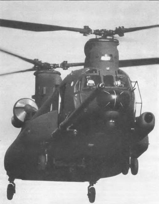 Boeing Vertol СН-47 Chinook Боинг-Вертол СН-47 «Чинук» ТРАНСПОРТНО-ДЕСАНТНЫЙ ВЕРТОЛЕТ Предназначен для высадки десанта, эвакуации раненых с поля боя и доставки грузов и военной техники. Вертолет особенно подходит для доставки тяжелых грузов за линию фронта, так как способен переносить их на большой скорости. Из заявок, поданных пятью компаниями по производству вертолетов, ВВС США выбрали вариант компании «Боинг-Вертол» Модель 114, как наиболее отвечающий требованиям, предъявляемым к фронтовому мобильному вертолету. Он должен был иметь оборудование для полетов в любую погоду, нести нагрузку 1814 кг внутри фюзеляжа или 7257 кг на внешнем тросе, перевозить до 40 военнослужащих, иметь возможность непосредственной загрузки в хвостовой части фюзеляжа, а также приспособления для эвакуации раненых и перевозки любого компонента ракетной системы «Першинг». В июне 1959 г. был заключен первый контракт на 5 вертолетов YCH-1 В. Позже они получили обозначение YCH- 47А «Чинук». Вертолет (похожий на увеличенный вариант СН-46) был оснащен неубирающим- ся четырехопорным шасси, а с каждой стороны нижней части фюзеляжа располагались герметизированные обтекаемые гондолы, разделенные на подотсеки. Они занимали почти три четверти длины фюзеляжа, способствуя увеличению плавучести герметизированной нижней части фюзеляжа при эксплуатации с поверхности воды. Первый аппарат YHC-1B поднялся в воздух 21 сентября 1961 г, к этому времени был заключен контракт на серийный выпуск вертолетов СН-47 А Сначала они оснащались турбовальными двигателями Лайкомин T55-L-5 мощностью на валу 1641 кВт/2200 л.с., а затем турбовальными двигателями T55-L-7 мощностью 1976 кВт/2650 л.с. Поставки вертолетов СН- 47А начались в декабре 1962 г. Впоследствии было выпущено несколько вариантов, в том числе СН-47В с более мощными турбовальными двигателями T55-L-7C мощностью на валу 2125 кВт/2850 л.с., с измененной конструкцией лопастей несущего винта. Первый образец поднялся в воздух в октябре 1966 г., а поставки начались 10 мая 1967 г. За ним последовал вариант СН-47С (Модель 234), оснащенный двумя турбовальными двигателями T55-L-11С мощностью 2796 кВт/3750 л.с., с усиленной трансмиссией и с большей емкостью топливных баков Первый из таких аппаратов совершил полет 14 октября 1967 г., а в начале 1968 г начались поставки серийных машин. Девять аппаратов, аналогичных варианту СН-47С, были построены для ВС Канады под обозначением СН-147. Их поставки начались в сентябре 1974 г. Этот вариант оборудован самыми современными системами безопасности и управления полетом, максимальный вес при взлете с земли составлял 22680 кг, а при аварийном взлете с воды – 20865 кг. Во время войны во Вьетнаме были выпущены 4 экземпляра варианта АСН-47А, по внешней компоновке напоминавших вертолет СН-47А, но оснащенных броней и вооружением из 40-мм гранатомета в носовой части, 20-мм пушки, пулемета калибра 7,62 мм или двух 19-зарядных ракетных контейнеров Кроме того в кабине могли располагаться 5 стрелков, в распоря жении каждого имелся пулемет калибра 12,7 или 7,62 мм, установленный на гибкой направляющей. В соответствии с программой развития американской армии, по одному вертолету каждой модели (СН-47А, СН-47В и СН-47С) демонтировали до основного каркаса с последующей реконструкцией для получения усовершенствованного стандарта, который стал опытным образцом CH-47D. Эти усовершенствованные вертолеты оснащены б