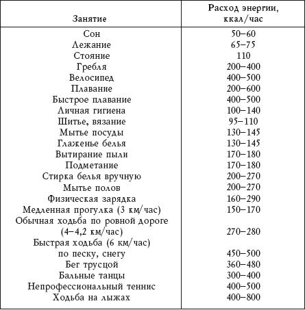 Кроме того, так называемые моментальные диеты позволяют потерять вес (похудеть) лишь до определенной степени. Примерно через 3 недели человек, соблюдающий ее, достигает той грани, после которой вес стабилизируется, перестает снижаться. Дело в том, что организм к этому моменту начинает работать в защищенном режиме, перестраивается на достаточно низкую дозу калорий. При этом стоит лишь чуть-чуть отступить от такой строгой диеты, и калории, которые организм «приберегал», тут же возникнут в виде новых жировых отложений. Поэтому, для того чтобы достичь лучшего результата в борьбе с лишним весом и целлюлитом, следует выяснить количество употребляемых и расходуемых калорий в день, для чего составить свое меню на день и посчитать, сколько калорий содержит ваша пища. Приблизительное количество каллорий, содержащихся в различных продуктах, указано в таблице 1. Таблица 1 Калорийность наиболее часто употребляемых пищевых продуктов (приводится по книге Гурвич М. М. «Лечебное питание при сахарном диабете») ![]() ![]() ![]() ![]() ![]() ![]() ![]() Из приведенной таблицы видно, что больше всего калорий содержится в выпечке, десертах, крупах, в мясных изделиях. Однако, грамотно составляя свое меню, не следует исключать из рациона мясо и крупы, которые очень полезны для организма. А вот от выпечки можно отказаться. Также можно исключить или ограничить употребление макаронных изделий, сладких каш, копченостей, колбас, солений, маринадов, специй, а также ограничить употребление соли и сахара. Кроме того, следует рассчитать (хотя бы примерно), сколько вы тратите калорий в день. Для этого удобно воспользоваться таблицей 2. Таблица 2 Расход энергии (приводится по книге Соколинская В. ?., Игнатьев И. Ю., Грибчак М. А. «Очищение суставов, сосудов, крови») ![]() Относительно режима питания существует несколько основных правил: – никогда не следует есть перед тренировкой и сразу после нее. Разрешается есть за 2 часа до и через 1 час после физического напряжения. – желательно есть не позднее чем за 2-3 часа перед сном; – нужно вставать из-за стола, не дожидаясь чувства сытости. Ниже будут предложены наиболее популярные диеты. Какую из них выбрать, каждый должен решить, исходя из своих предпочтений. Диета №11– й завтрак: рыба вареная – 200 г; апельсин – 1 шт; кофе – 10 мл. 2– й завтрак: молоко теплое – 200 мл. Обед: бульон мясной – 200 мл; мясо отварное – 100 г; салат овощной – 150 г; хлеб отрубный – 2 ломтика; чай зеленый – 200 мл. Полдник: яблоко или груша – 1 шт. Ужин: овсяная каша – 200 г.